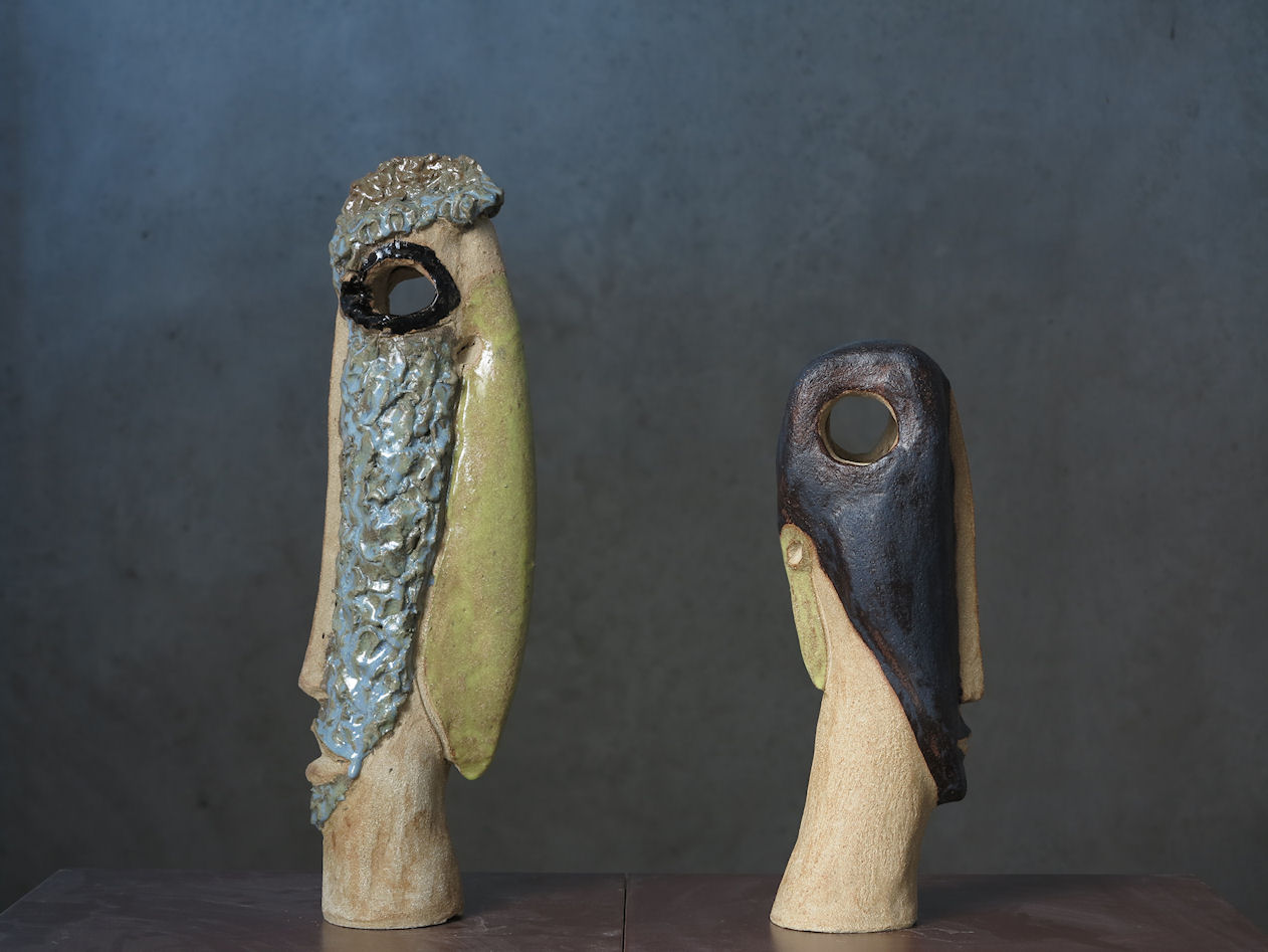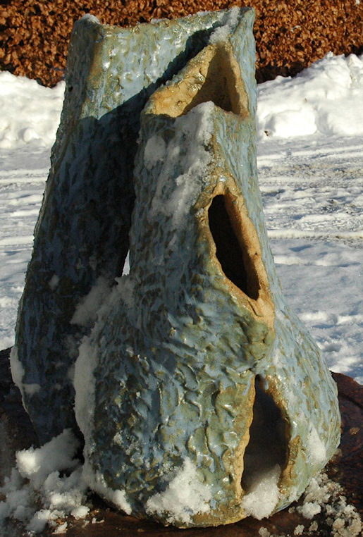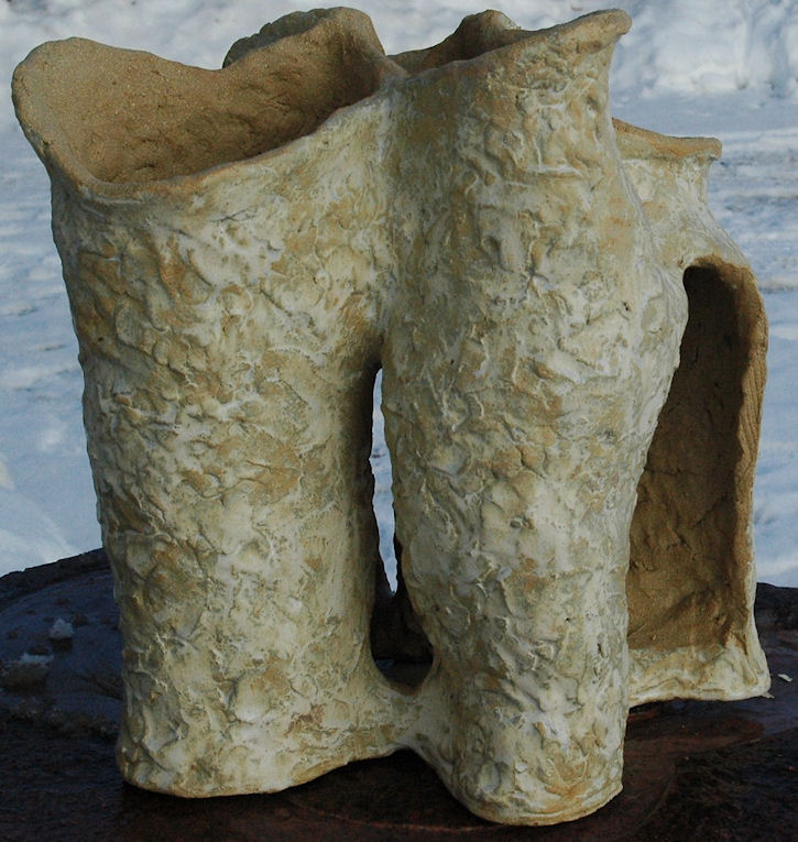Det blev i den første serie til hulvaserne og samtidigt en opdagelse af stentøjslerets stoflighed i sit grove udtryk.