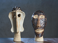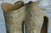 Senere udtryk valset og formet, så leret næsten falder af sig selv kun støttet af sin tvilling. Lidt tilbage i maskeradegaden også.